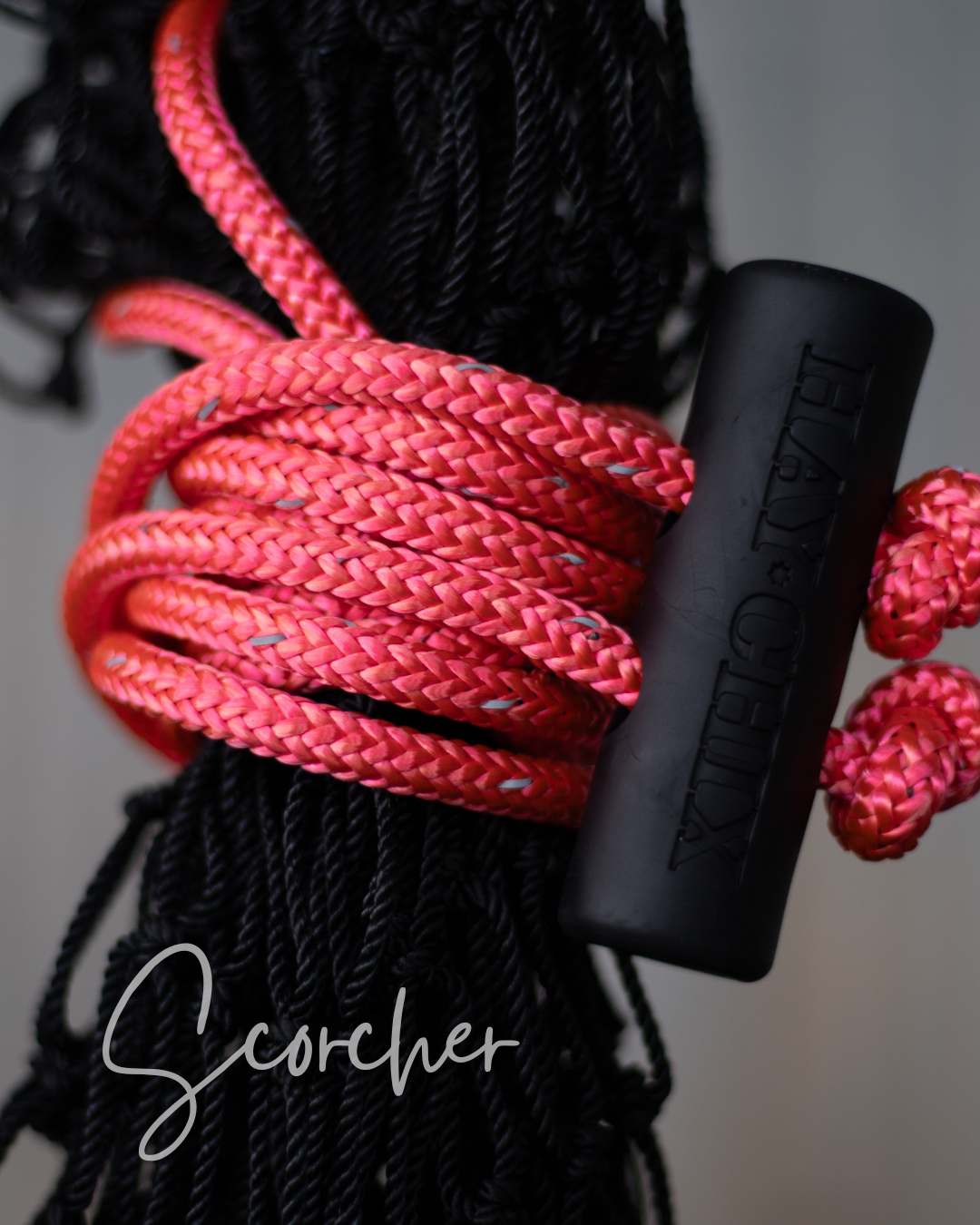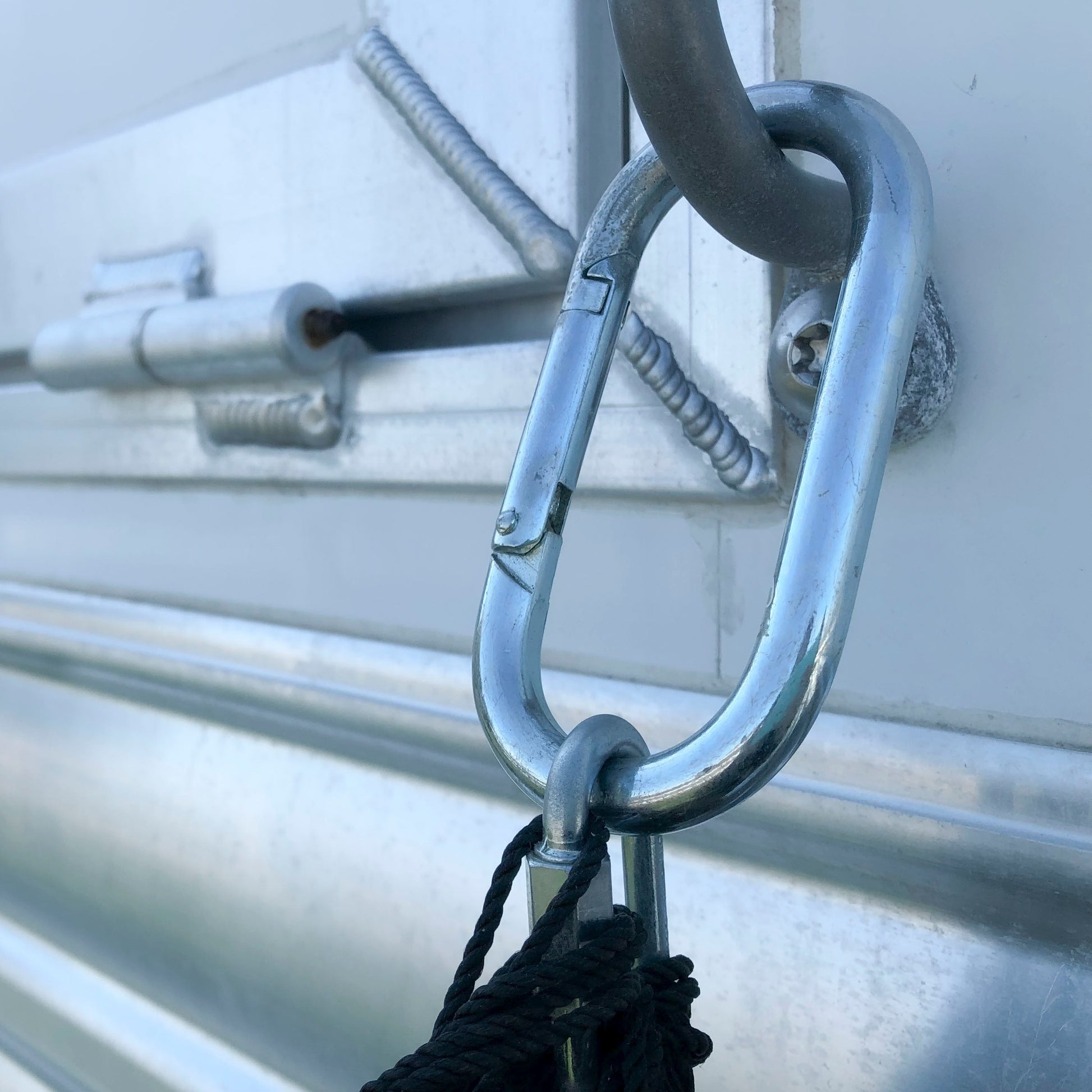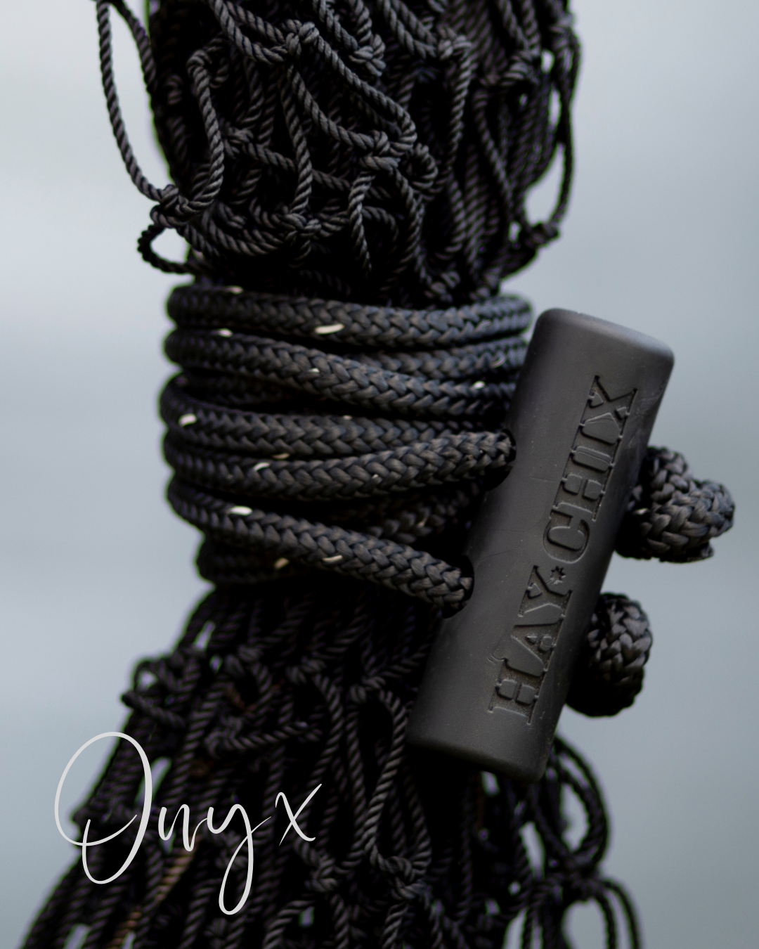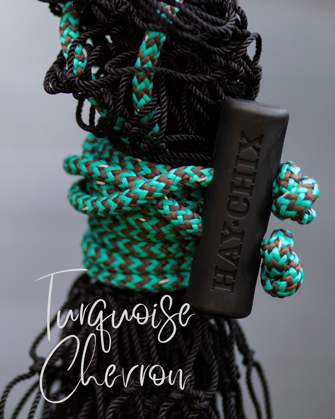 The Hay Chix® Half Bale Net (formerly known as 'Mini Net') attaches easily to a trailer, eye hook, fence, or tree; it's perfect for keeping your feeding program on track while on the go. This net holds about 1/2 of a small square bale (4-6 flakes.)