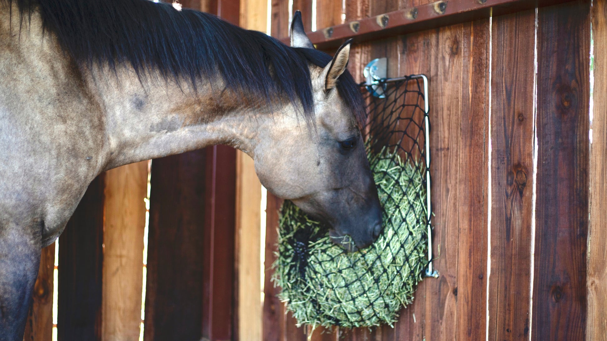 The "Half Bale Net" holds about 4-7 flakes of a small square bale. Great for streamlining chores. Use in stalls, trailers, lean-tos, turnouts, panels, fences, or on barn walls. Works indoors & outdoors! This net size can be paired with both the 12x24 frame and 24x24 frame.