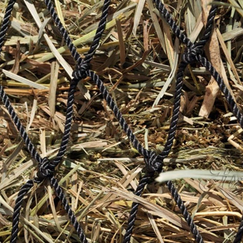 Warning: We do not recommend use with horned animals, horses with blankets, or non-breakaway halters. Net may be used with shod horses and animals with split hooves but must be used with a hay ring that is flush with the ground or hung high enough so they cannot paw at it. Net may be used with blankets as long as the buckles are covered or there is a barrier between the netted bale and the blanket. Read entire warning HERE.